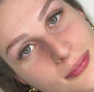 Sobrancelhas que valorizam seu rosto com naturalidade e harmonia, destacando os traços e contribuindo para uma expressão mais marcante e atraente.
